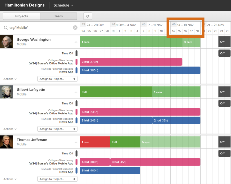 Take this mobile team, for example. They’ll be busy until the middle of November. You can put winning new mobile clients on the back burner for now.